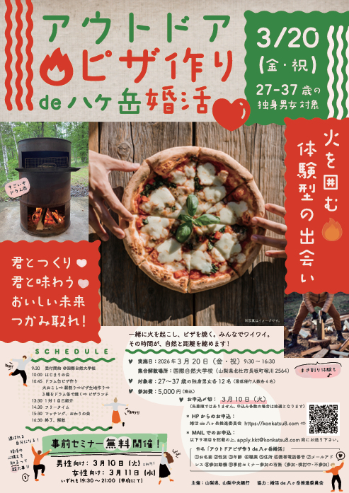 【予告】3月20日(金祝)アウトドアピザ作りde八ヶ岳婚活 ~火を囲む体験型の出会い~