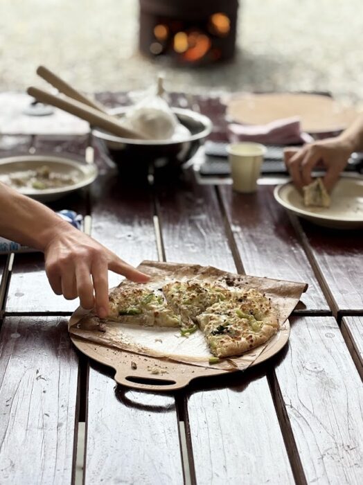 一緒に火をおこし、ピザを焼く。みんなでワイワイ。その時間が、自然と距離を縮めます。