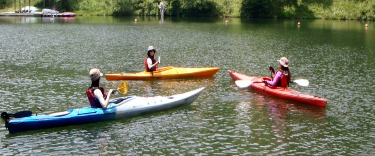 カヤック初心者大歓迎のプログラムです。この際貴方の趣味を一つ増やしてみませんか♪ 波のない小さな湖水での体験ですから安心です。もちろんカヤック経験者も大歓迎します。ベテランのインストラクターがどなたにも親切にお教えします。水の上の小さな冒険は、きっと貴方をとりこにします。あ、とりこになって欲しいのは異性の参加者に対してですけれど(^^;)、ま、どちらでもOKです♪ 初夏の一日、何かにとりこになる感動体験をして過ごしましょう(^_^)v