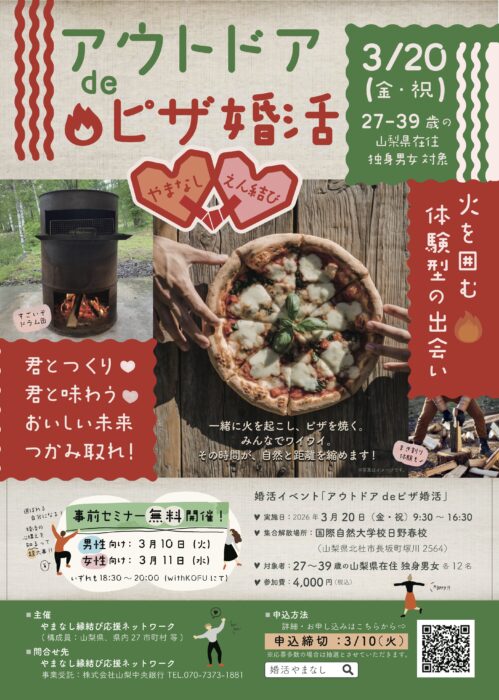 | イベント名 | アウトドアdeピザ婚活 ~火を囲む体験型の出会い~ |